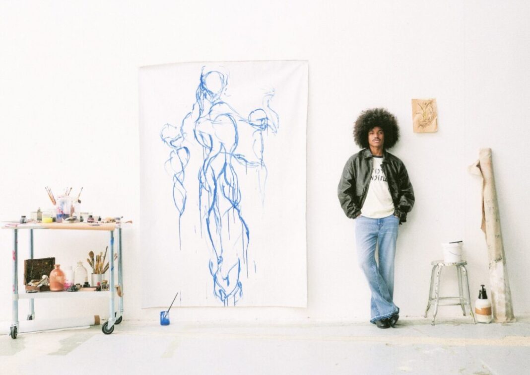 Born in Recife, in Brazil’s Northeast, Samuel de Saboia operates across disciplines, moving between visual art, fashion, and music. His work is marked by a strong narrative sensibility, where painting, textile, and sound coexist as extensions of the same creative universe.